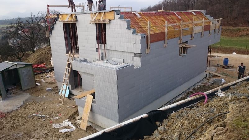 Trdna, klasična gradnja hiše z zidaki, nizkoenergijske hiše, pasivne hiše, hiše na ključ... Izdelava temeljne plošče za montažno hišo...